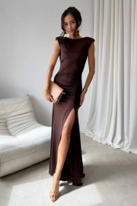 ASTI czekoladowa sukienka maxi z rozcięciem