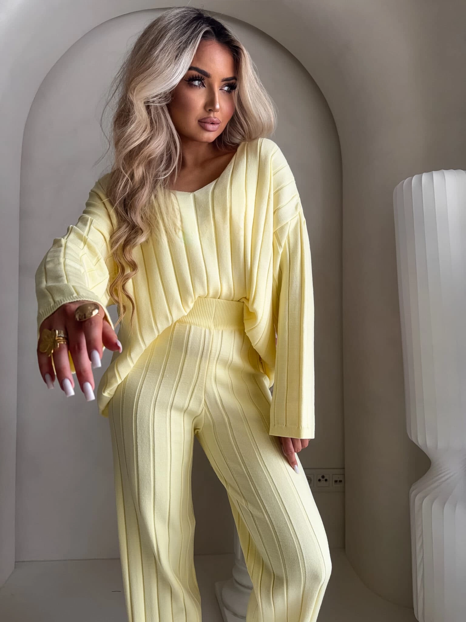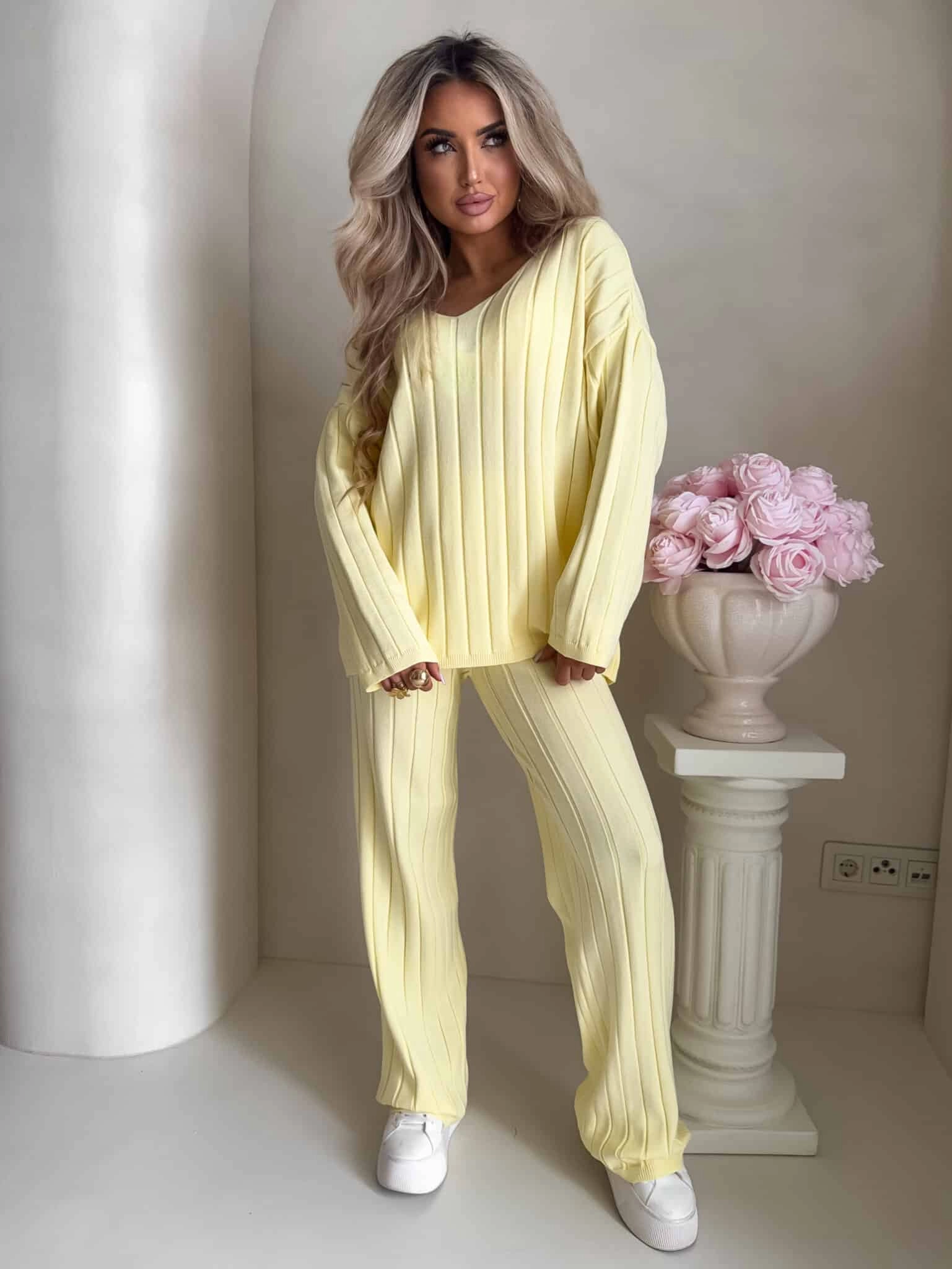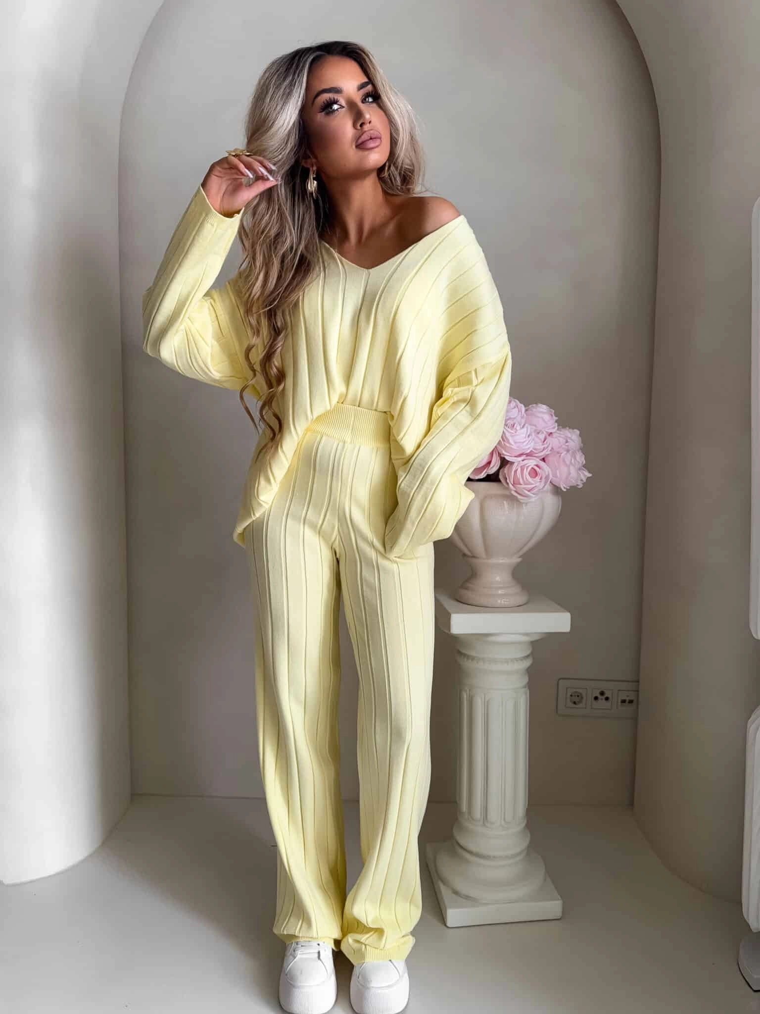 CANDICE cytrynowy komplet sweterkowy z szerokimi nogawkami