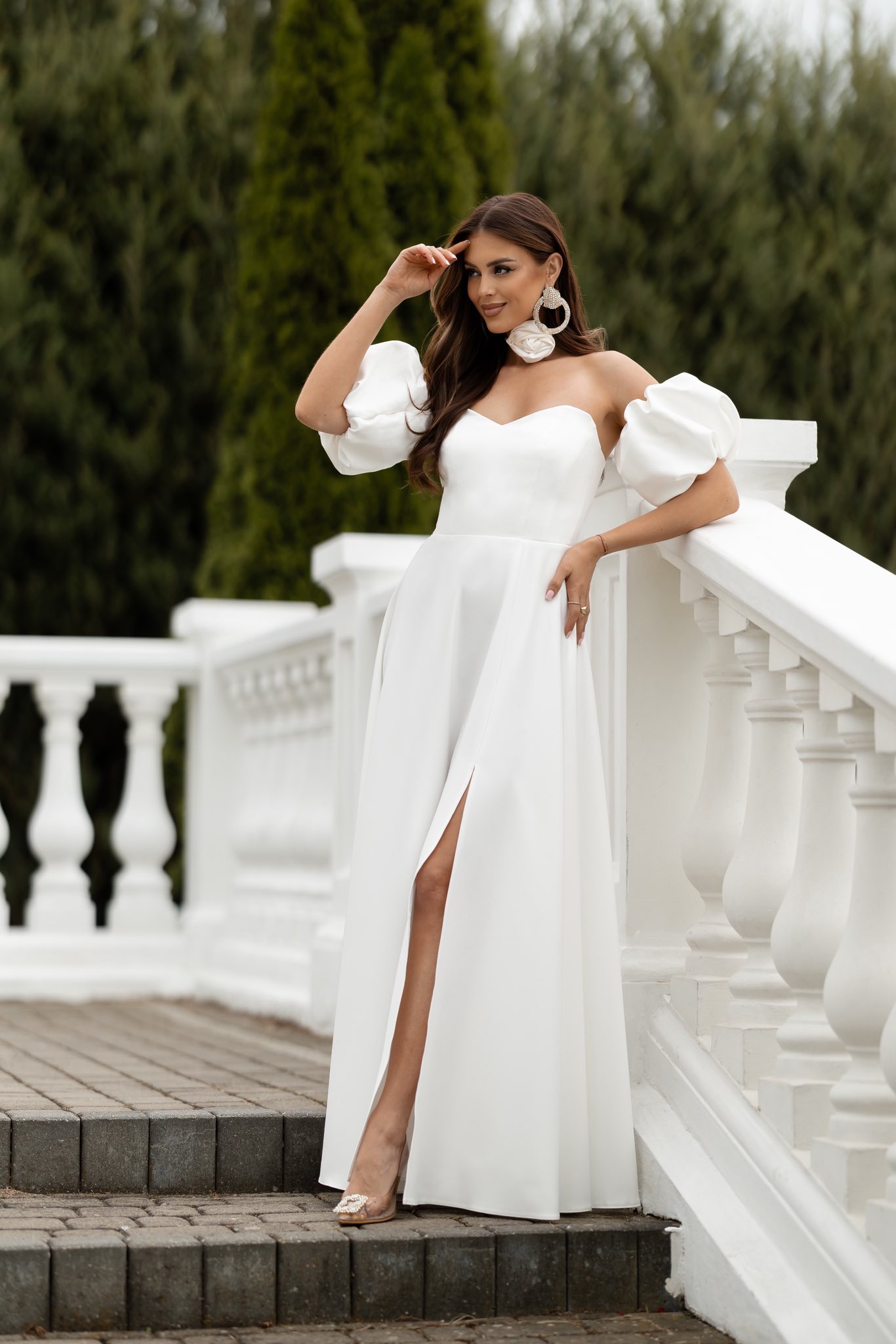 ESMERALDA biała sukienka maxi z bufkami na ramionach