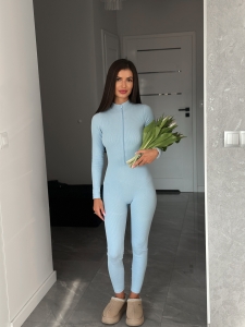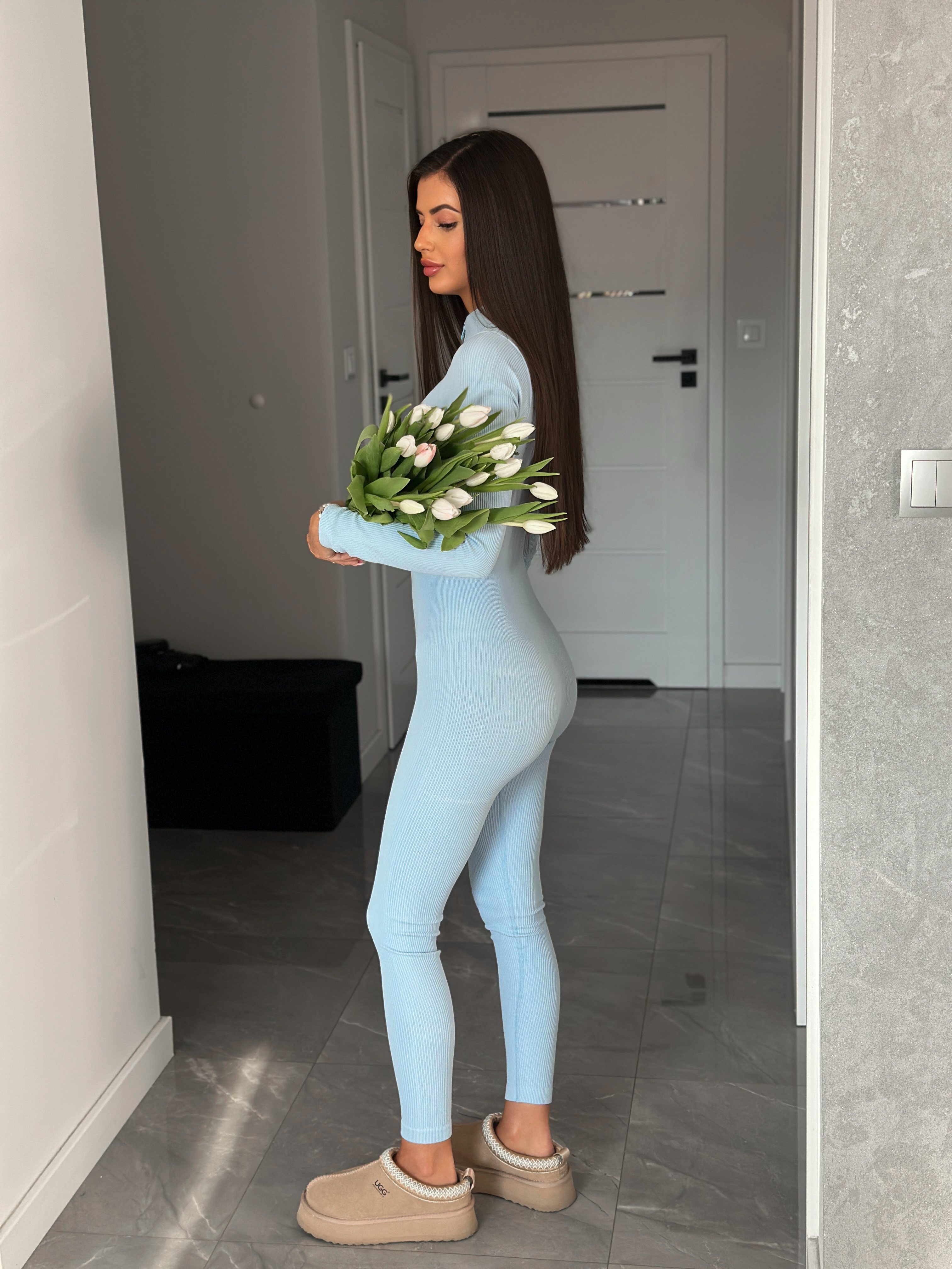 Niebieski, baby blue kombinezon prążkowany z suwakiem FEMME FIT – siła kobiecej sylwetki