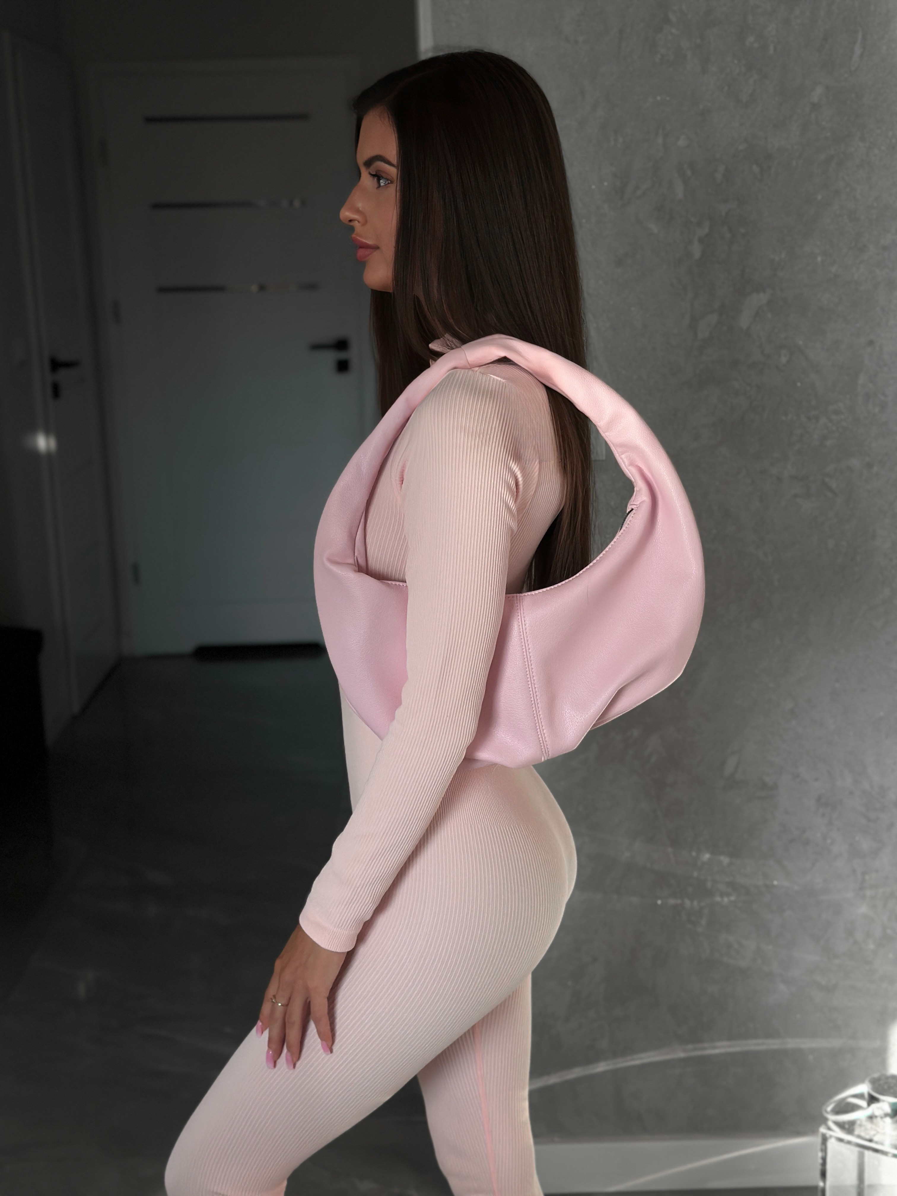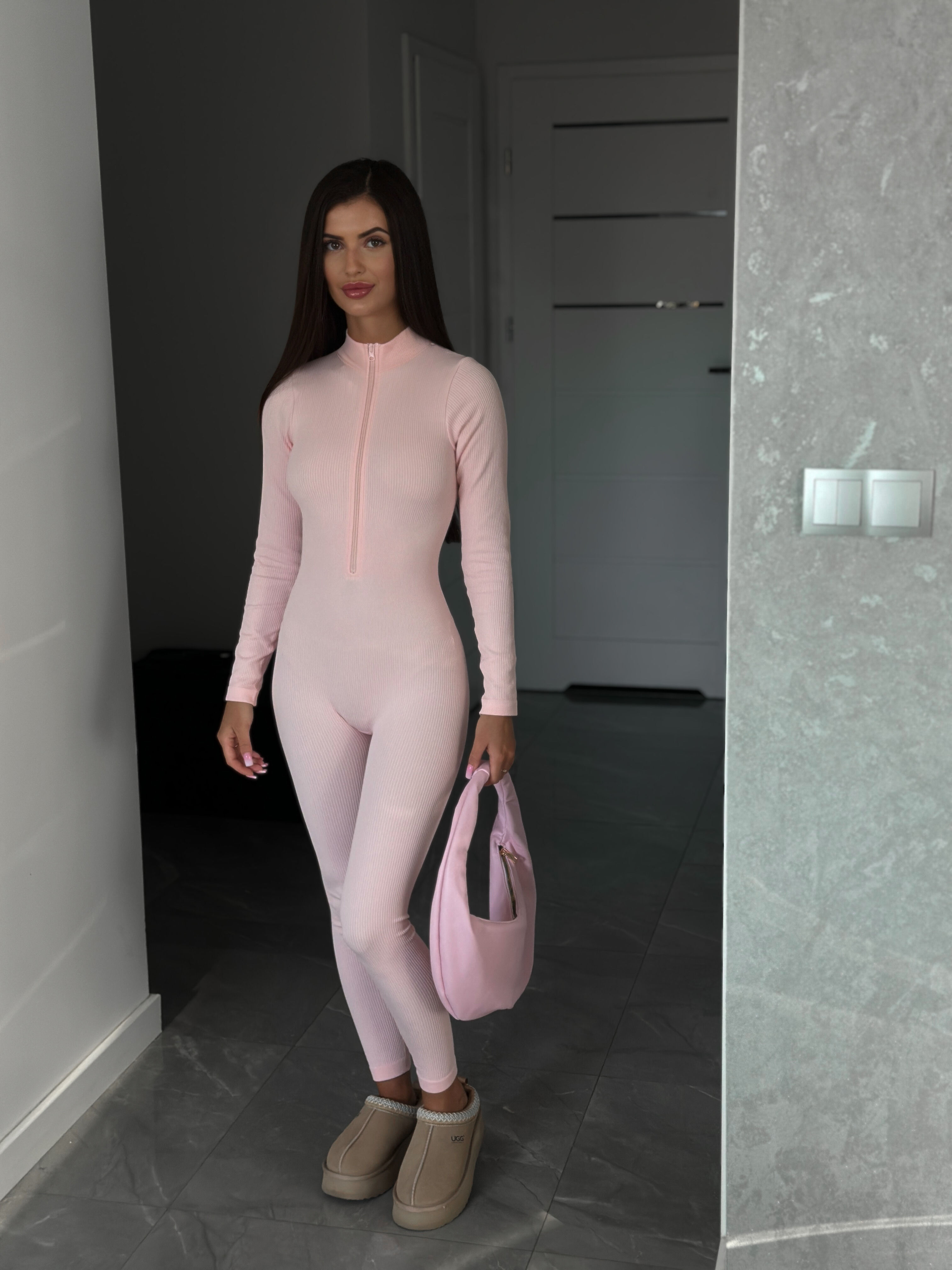 Pudrowo różowy kombinezon prążkowany z suwakiem FEMME FIT – siła kobiecej sylwetki