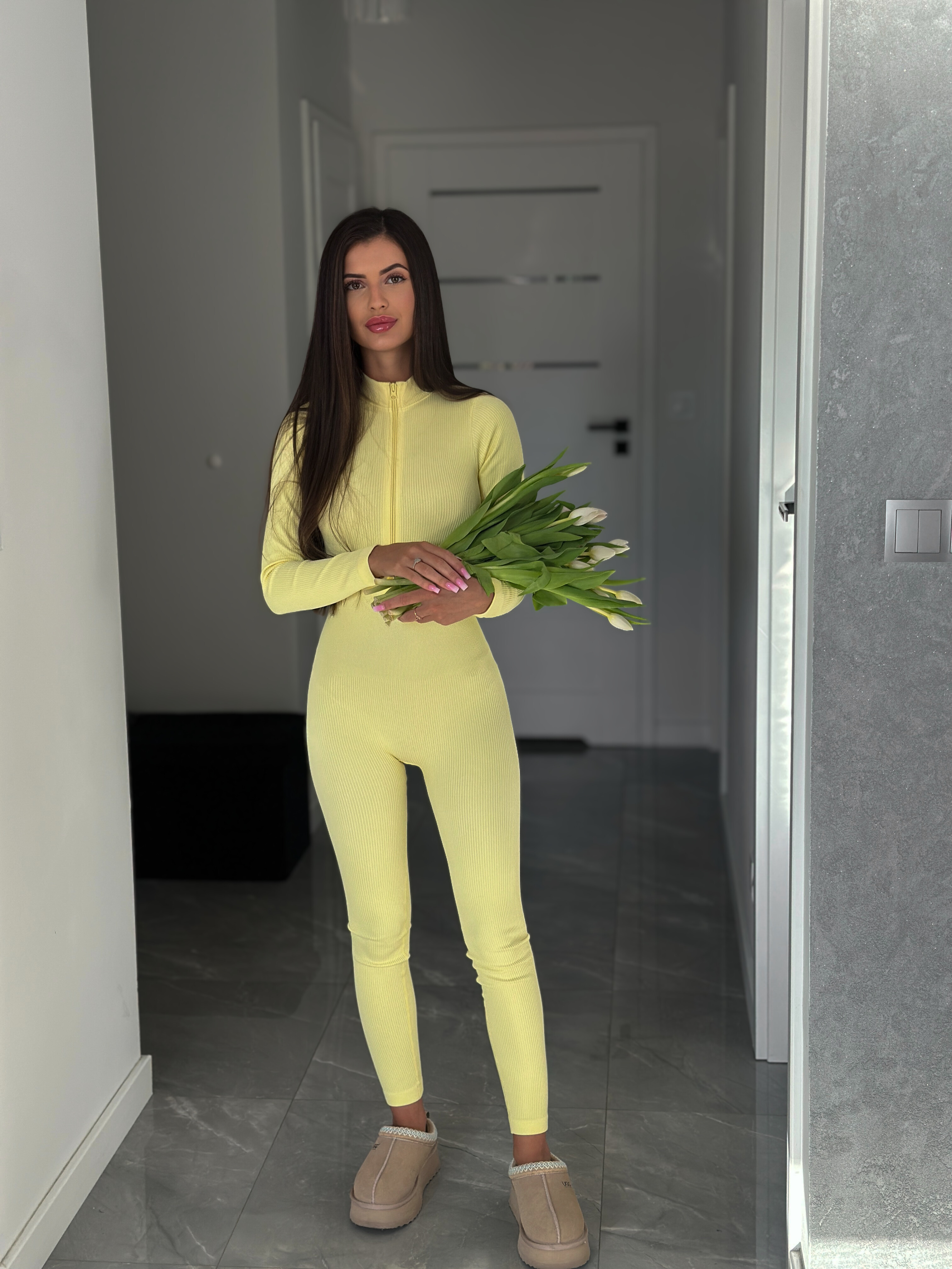Żółty kombinezon prążkowany z suwakiem FEMME FIT – siła kobiecej sylwetki