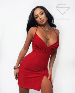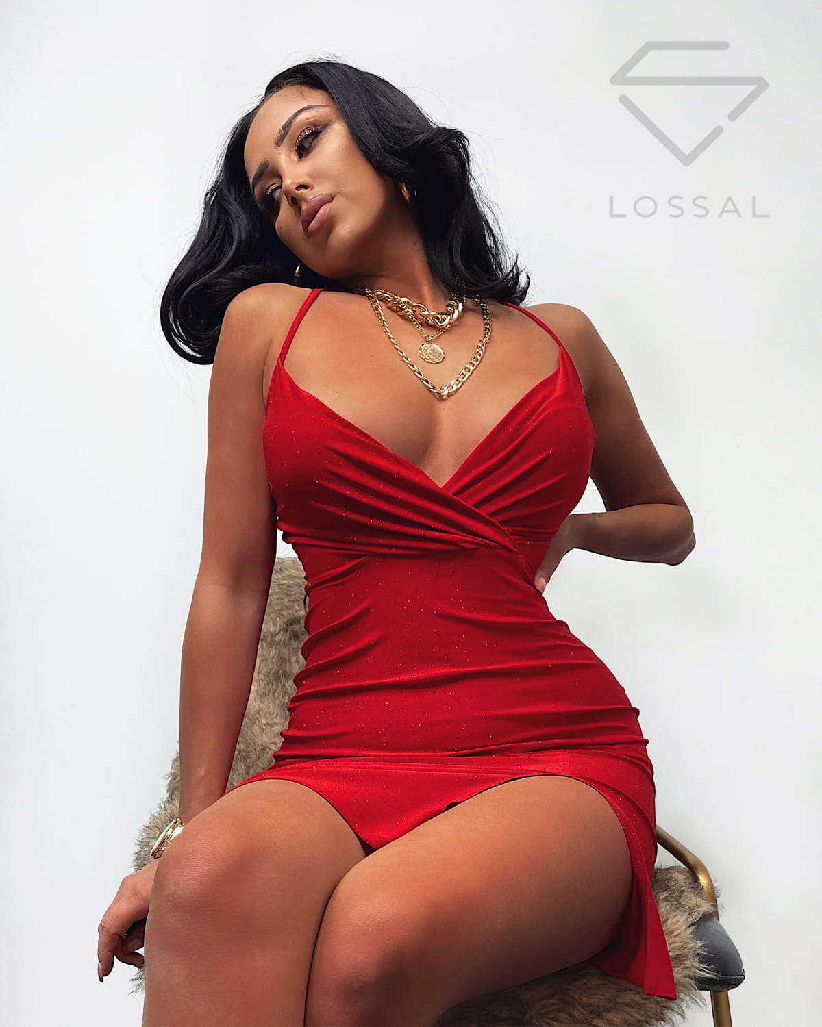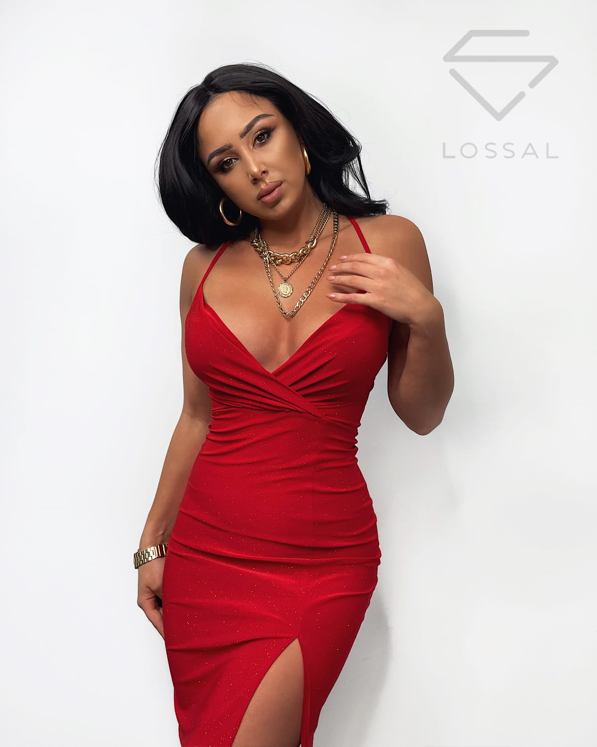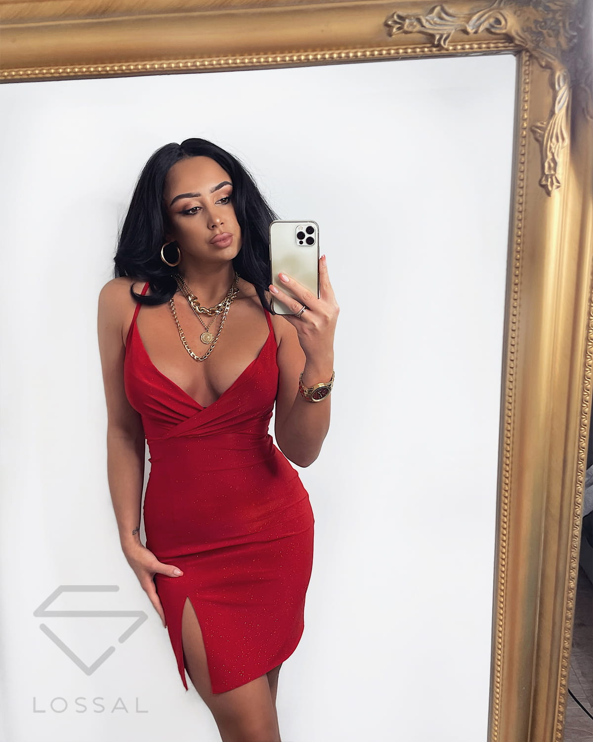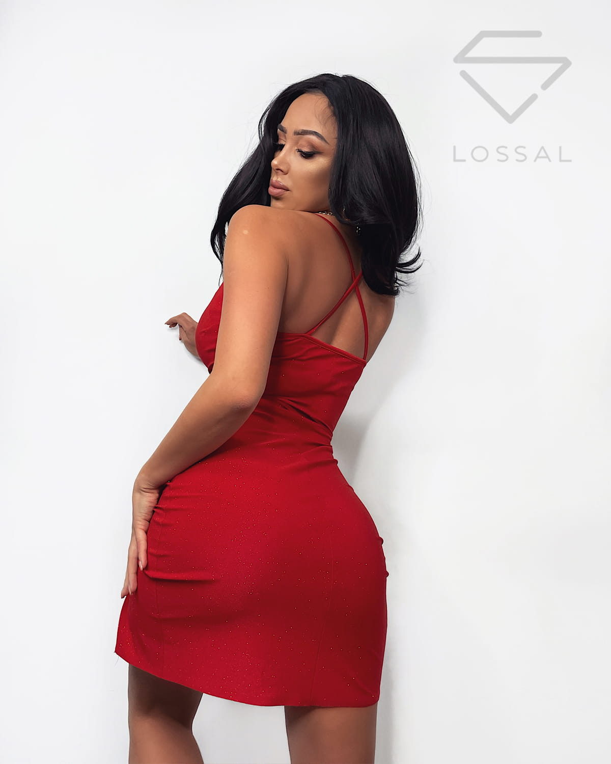 FRESH KISS czerwona brokatowa wieczorowa sukienka mini