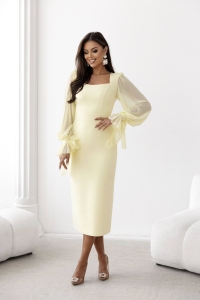 GIANNA midi żółta słoneczna elegancka sukienka z rękawem szyfonowym