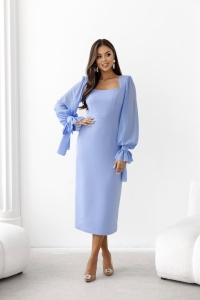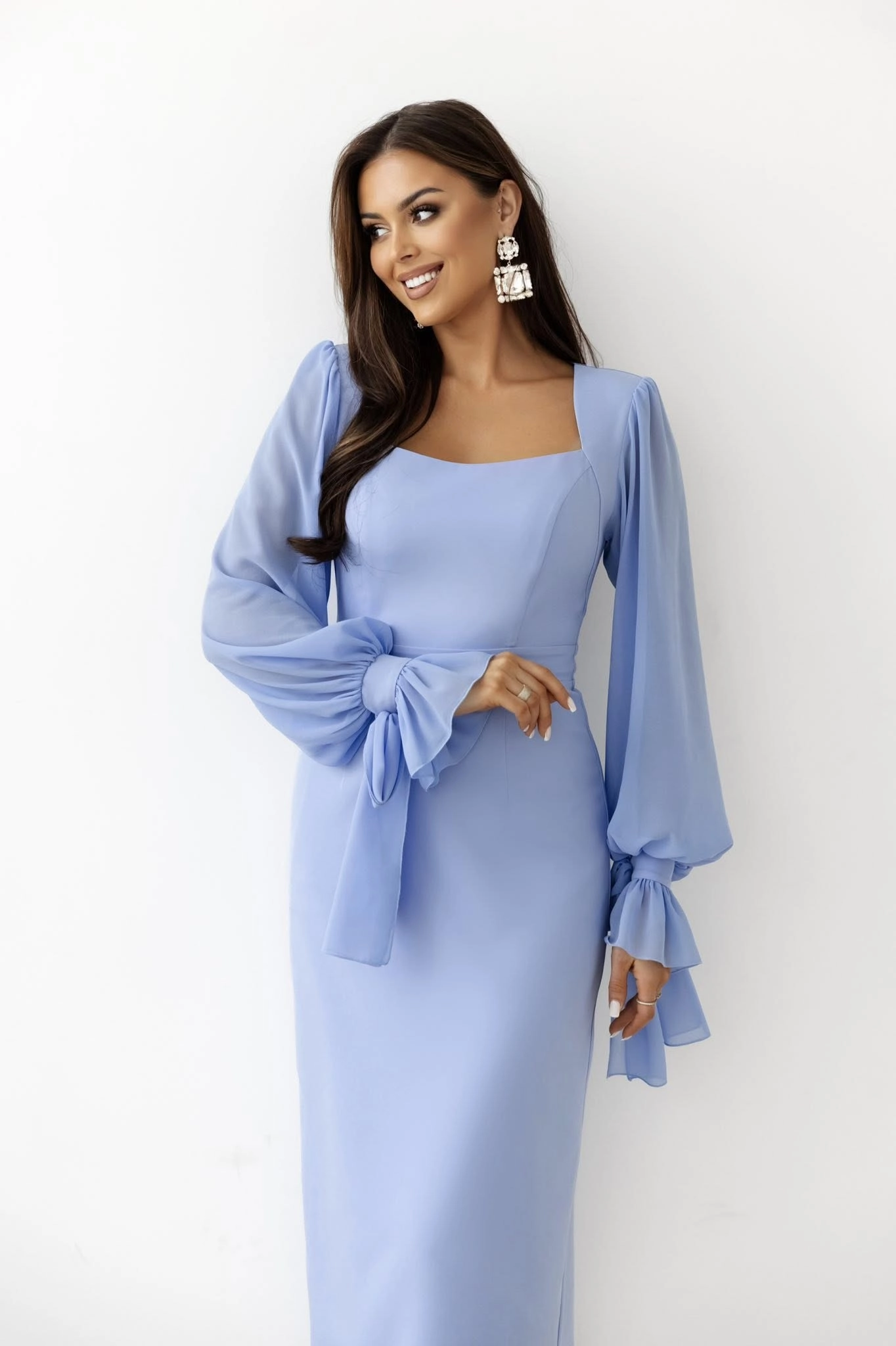 GIANNA niebieska elegancka sukienka z rękawem szyfonowym