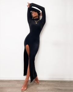 GOOD HUNTING czarna sukienka maxi z rozcięciem