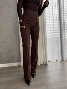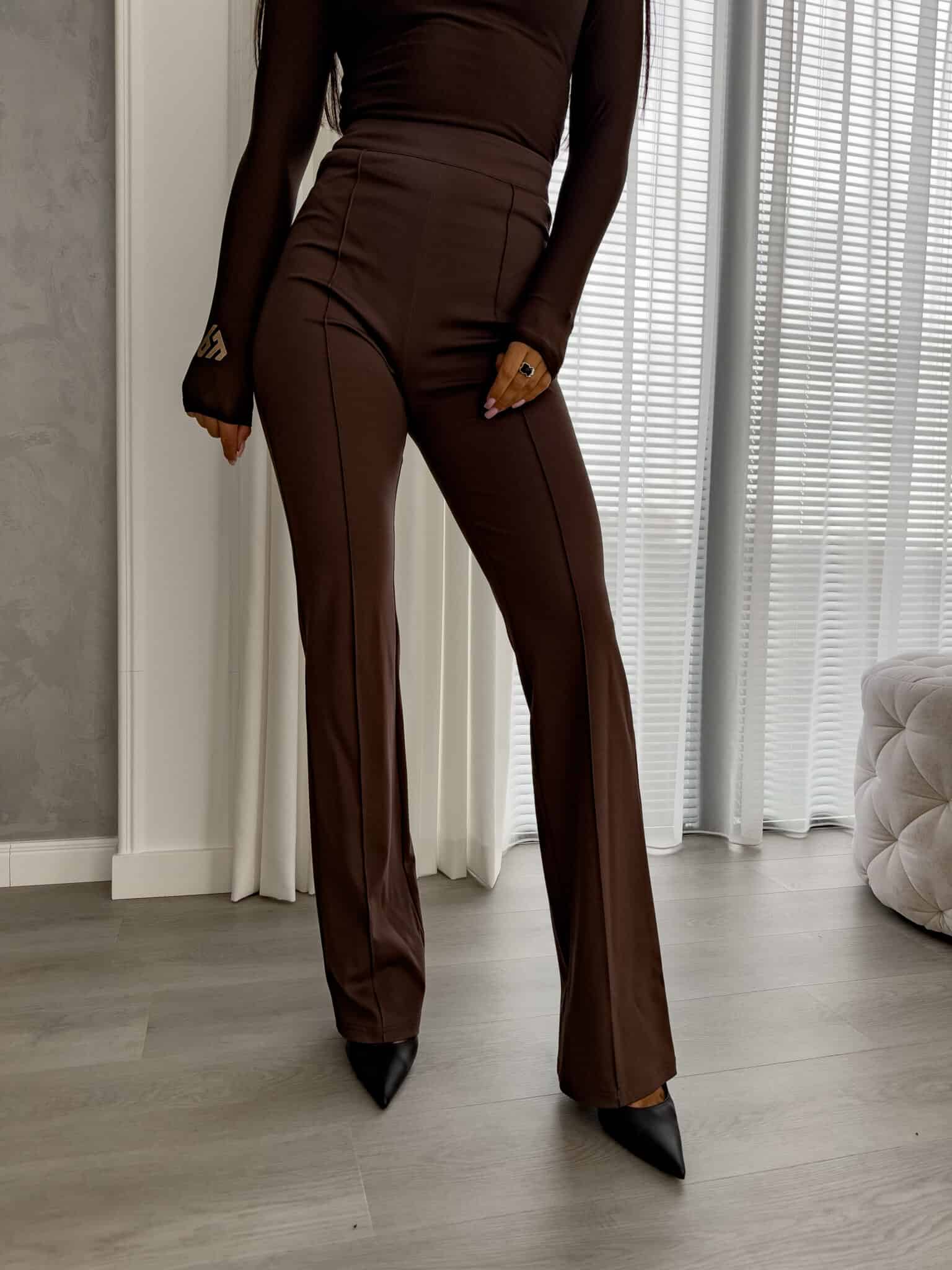 JOLLY czekoladowe spodnie dzwony z przeszyciami
