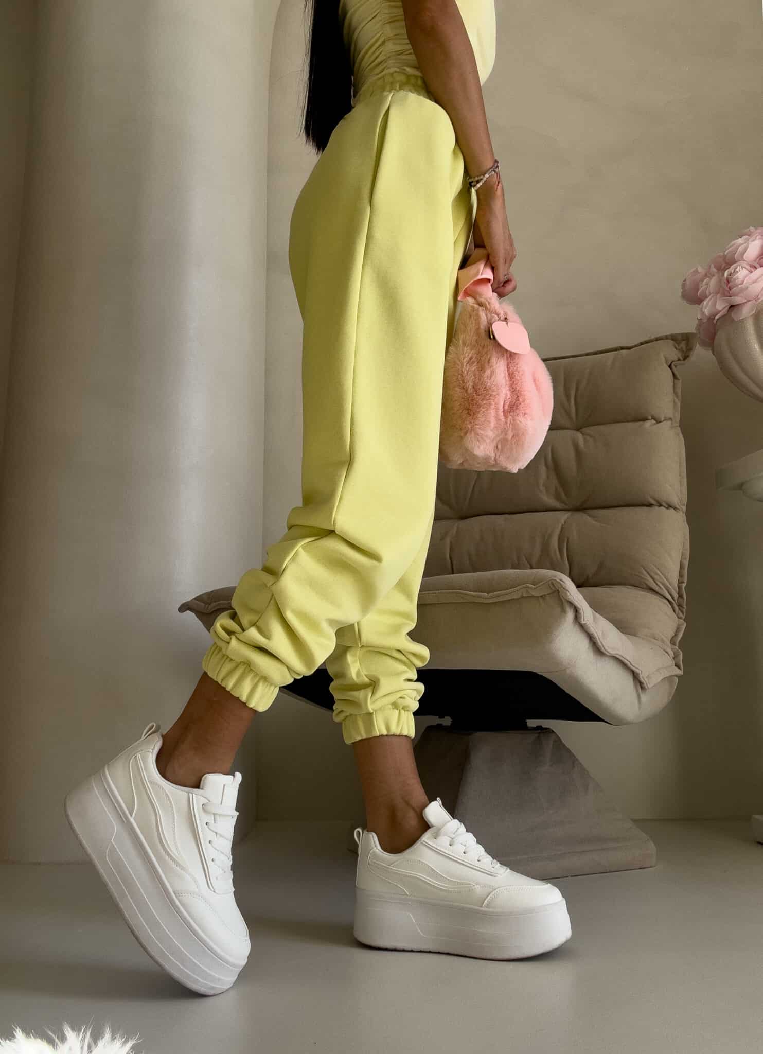LOWKEY cytrynowe spodnie dresowe ze ściągaczami