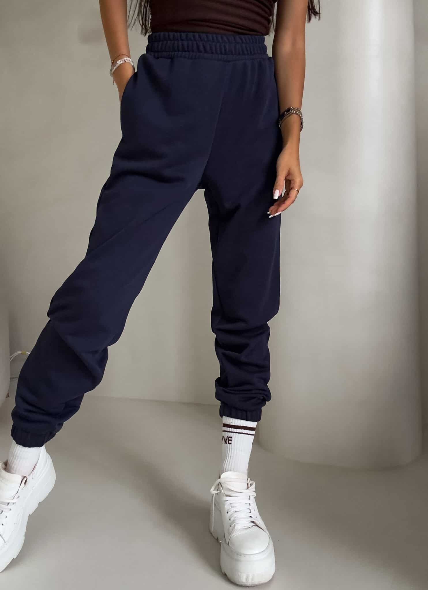 LOWKEY granatowe spodnie dresowe ze ściągaczami