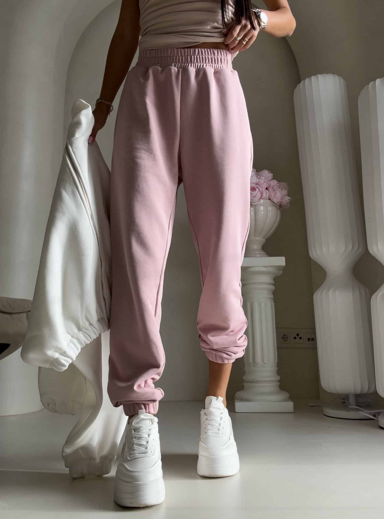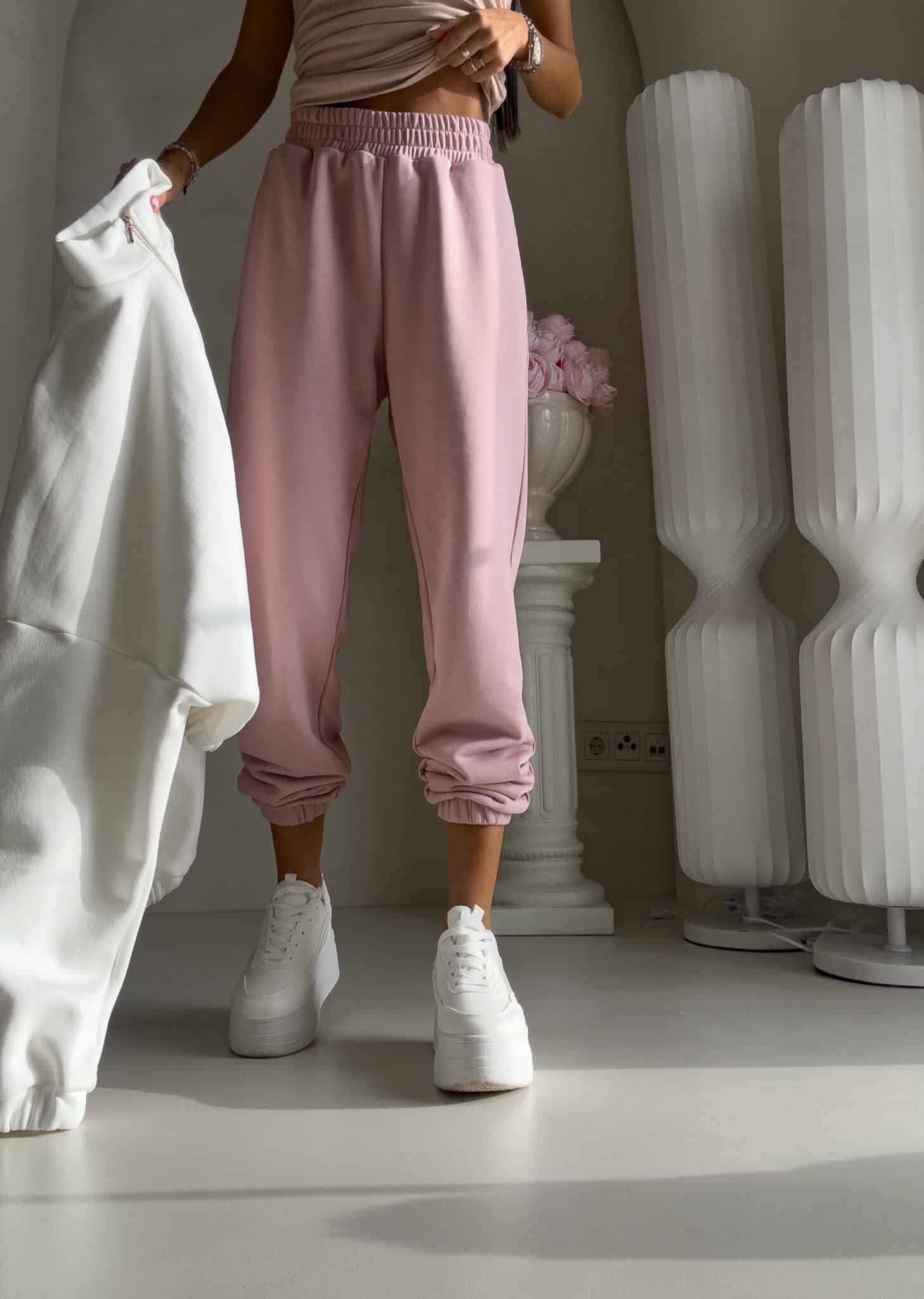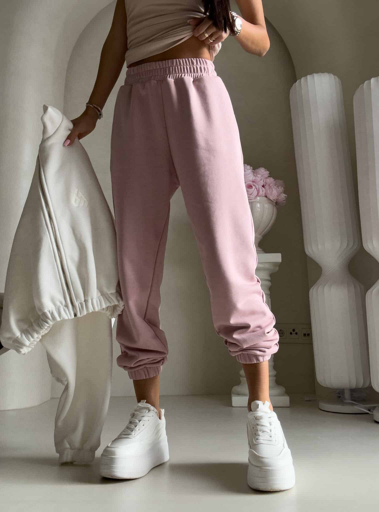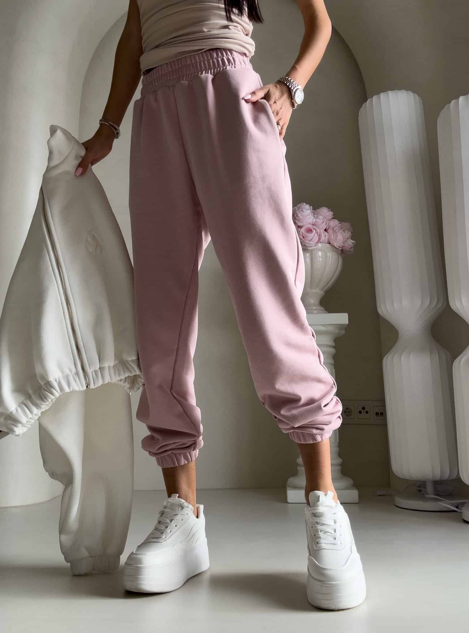 LOWKEY pudrowy róż spodnie dresowe ze ściągaczami