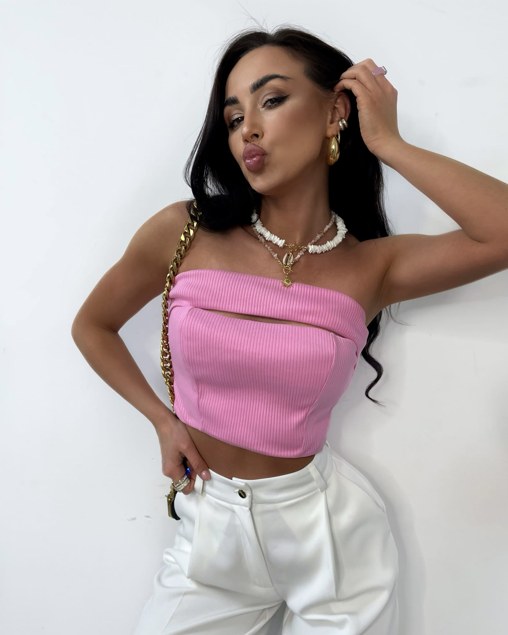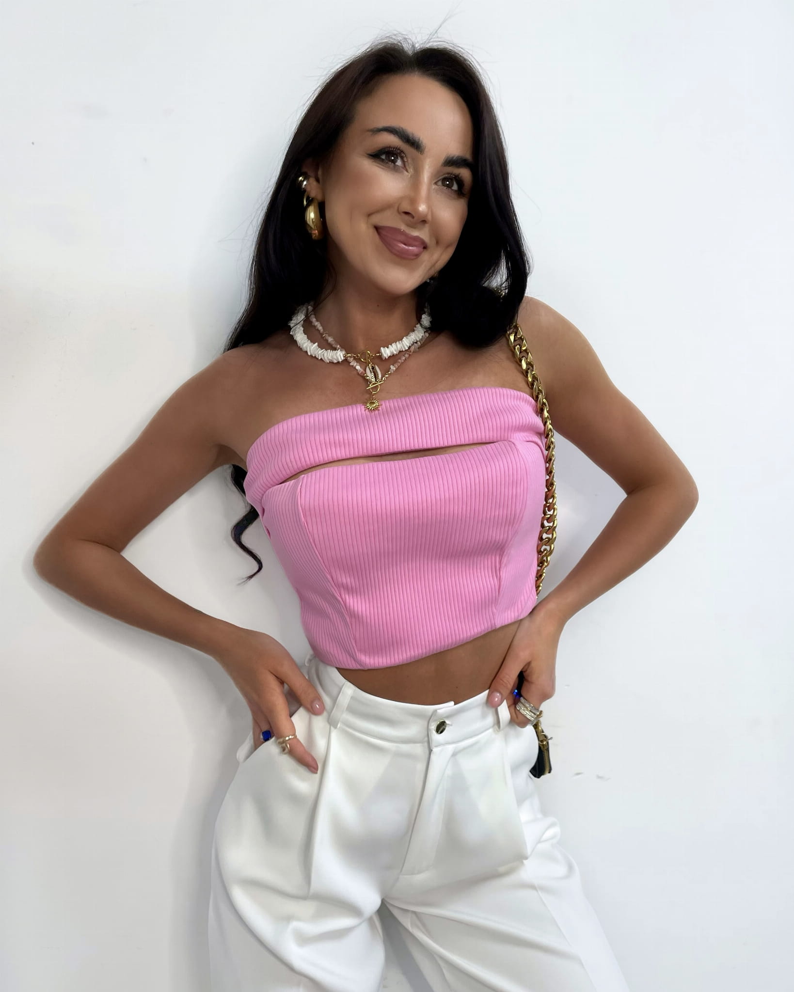 MAYLA różowy top opaska damska