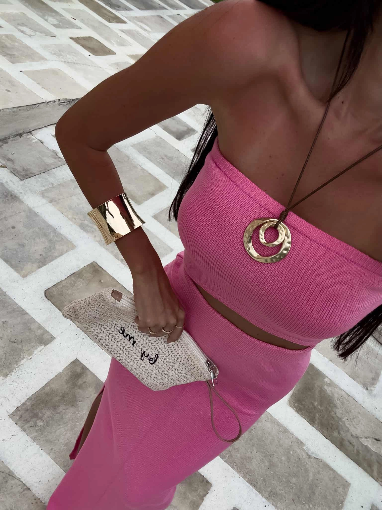 MEDUSA różowy komplet spódnica i top z kaszmirem