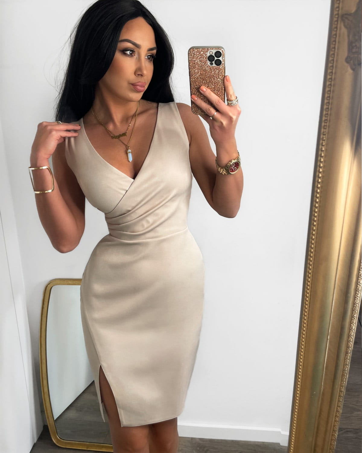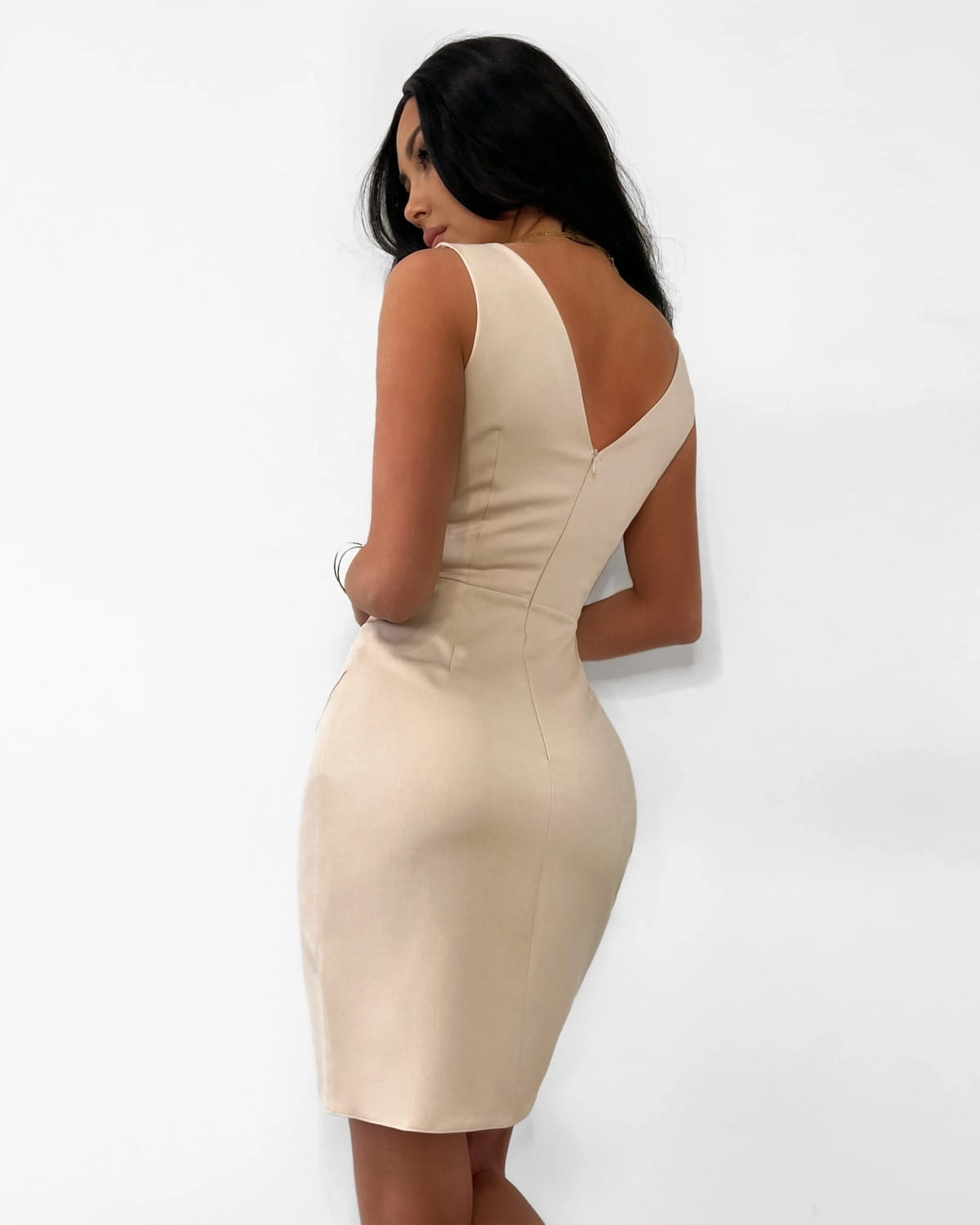 NOUGAT beżowa elegancka sukienka mini