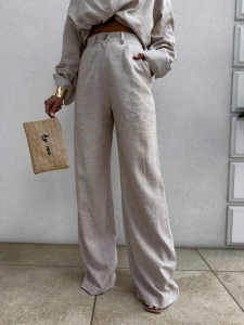 SIMPLE LINEN ciepły beż spodnie garniturowe klasyczne proste