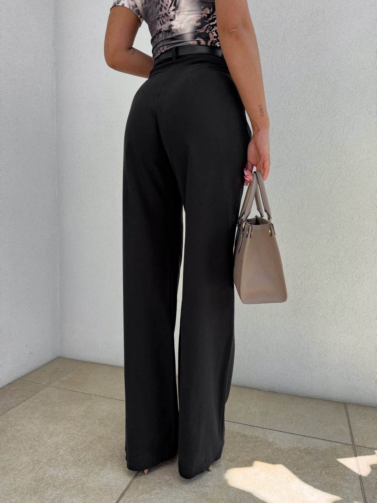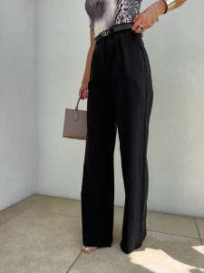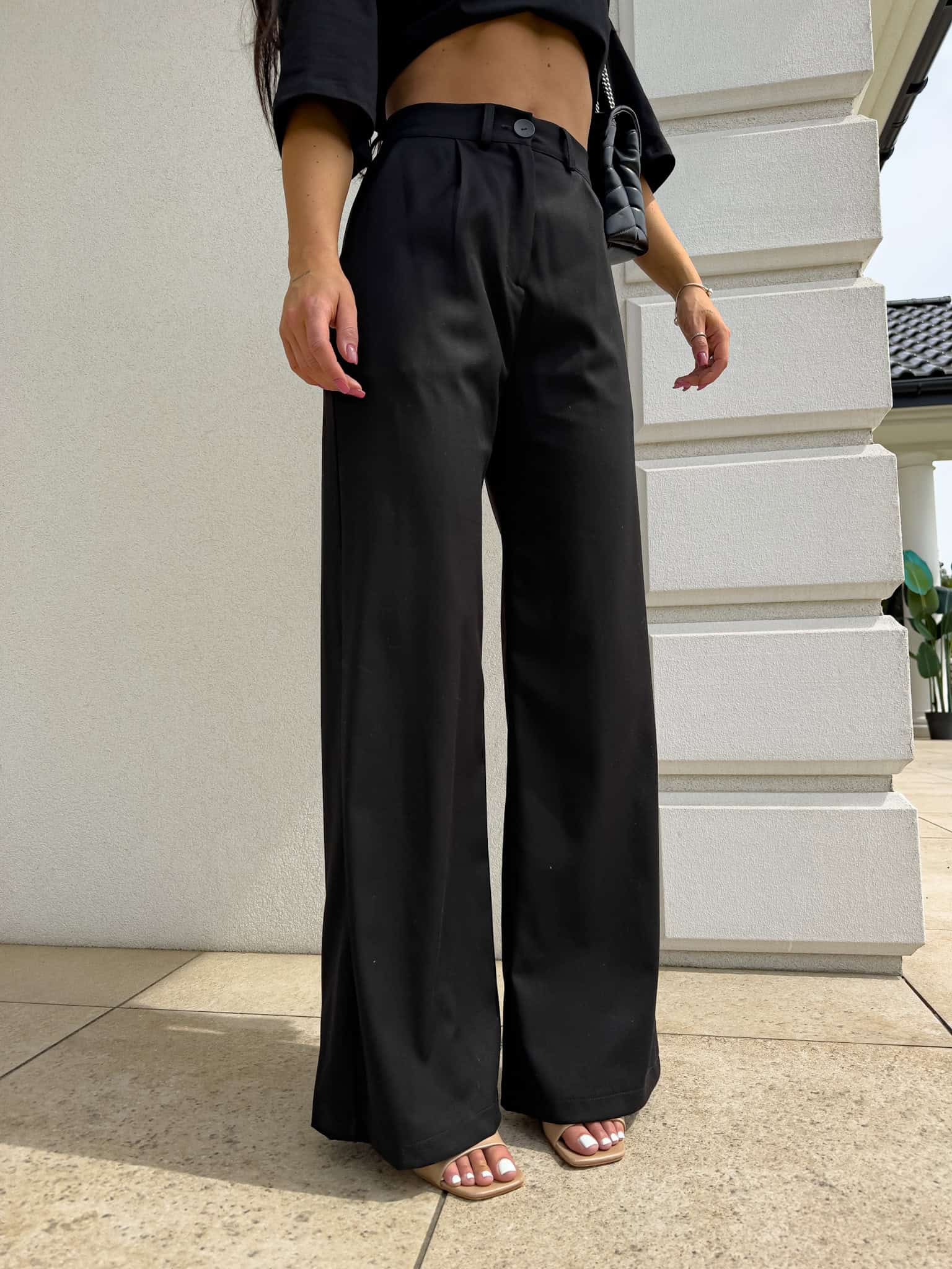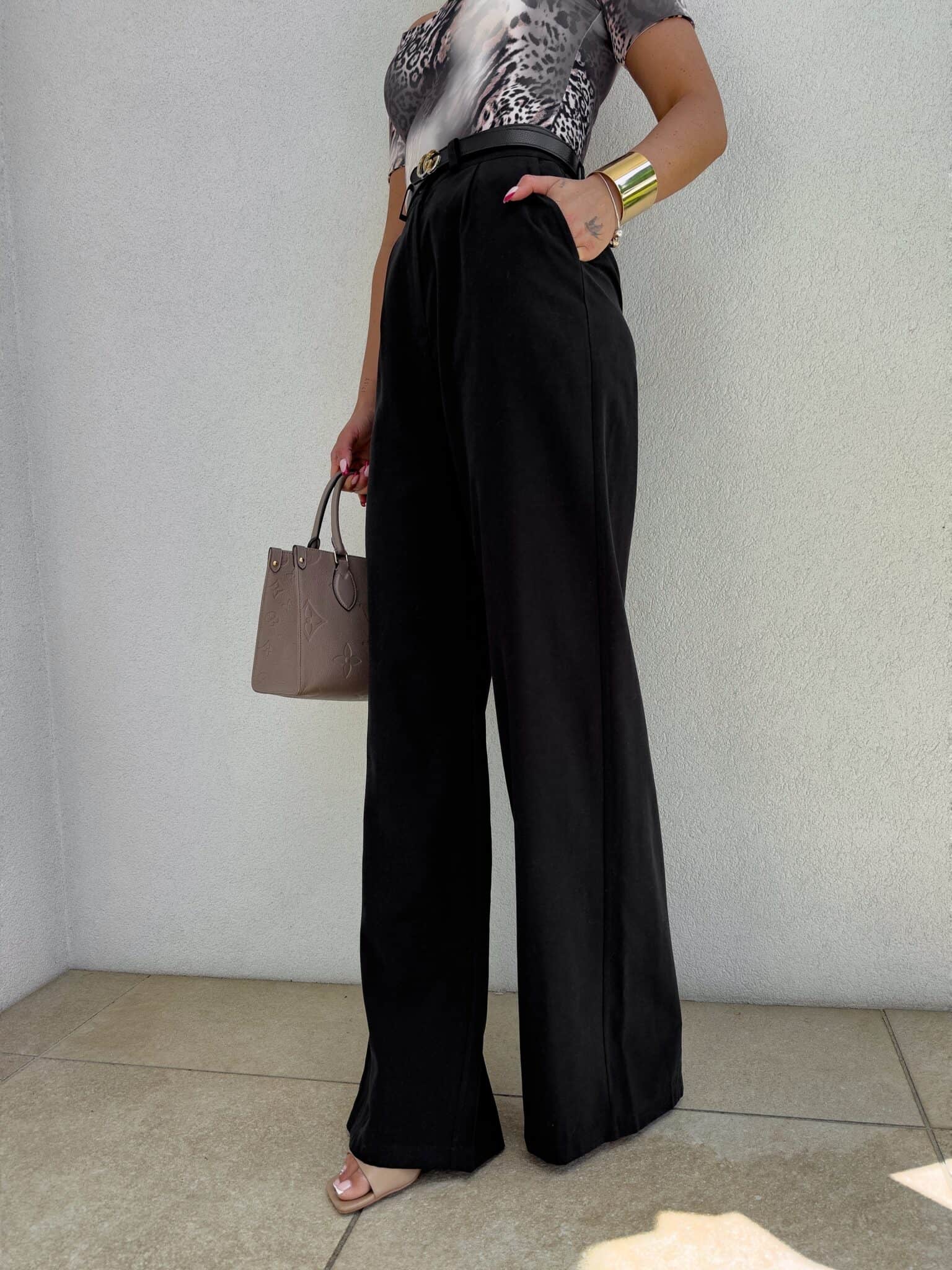 Dopracowany krój idealnie układa się na ciele, podkreślając talię i eksponując linię bioder. Wysoki stan pięknie modeluje proporcje, a prosta nogawka optycznie wydłuża nogi, nadając sylwetce lekkości i elegancji. Spodnie zapinane są na guzik i posiadają praktyczne szlufki, dzięki czemu możesz stylizować je również z paskiem.