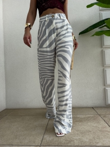 SIMPLE print szara zebra spodnie garniturowe klasyczne proste