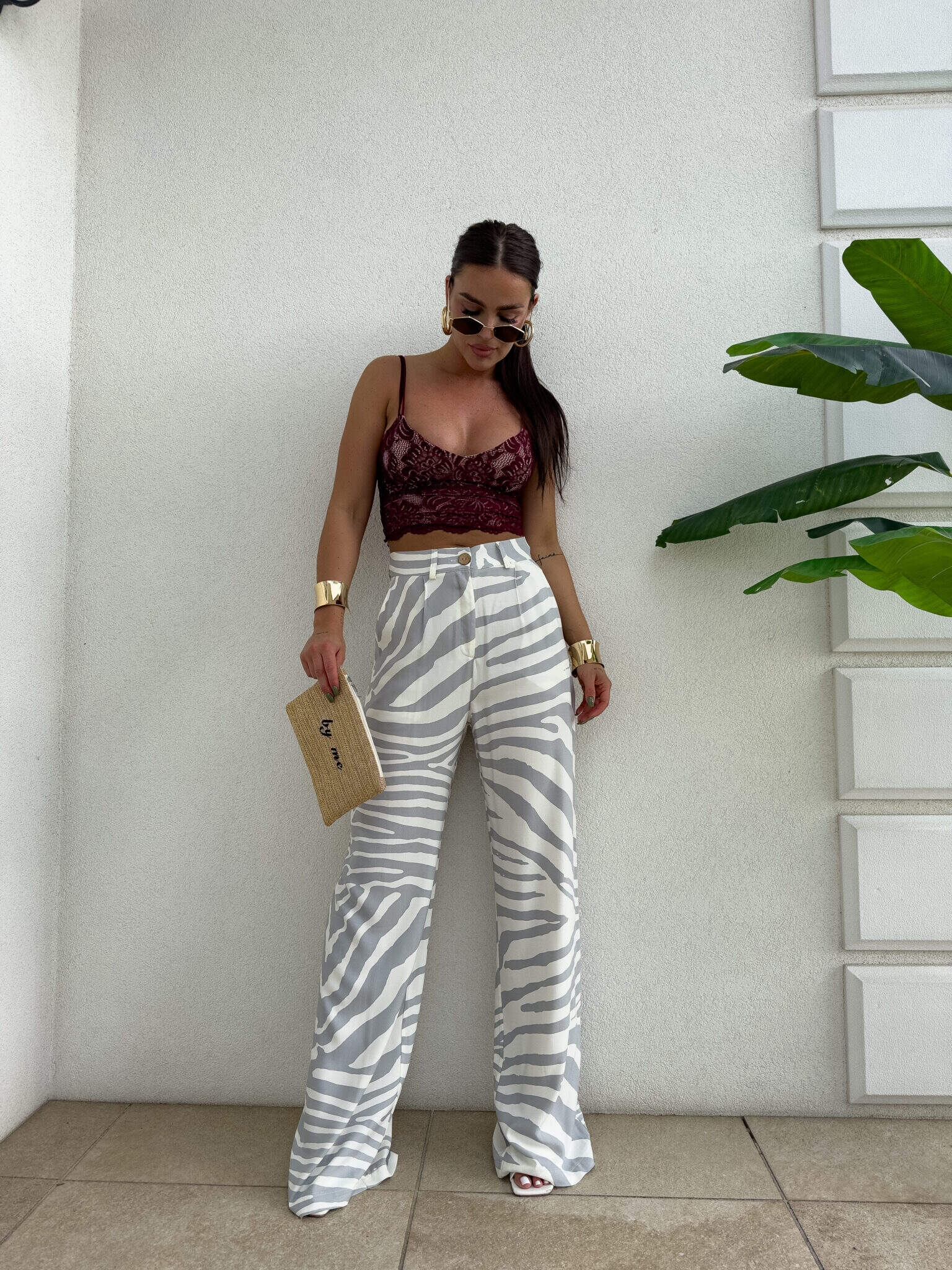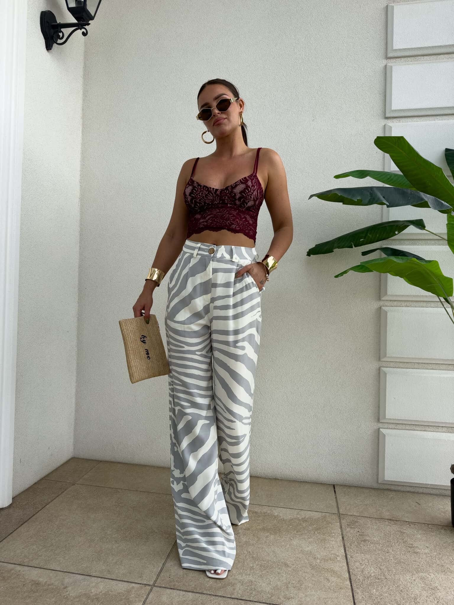Dopracowany krój idealnie układa się na ciele, podkreślając talię i eksponując linię bioder. Wysoki stan pięknie modeluje proporcje, a prosta nogawka optycznie wydłuża nogi, nadając sylwetce lekkości i elegancji. Spodnie zapinane są na guzik i posiadają praktyczne szlufki, dzięki czemu możesz stylizować je również z paskiem.