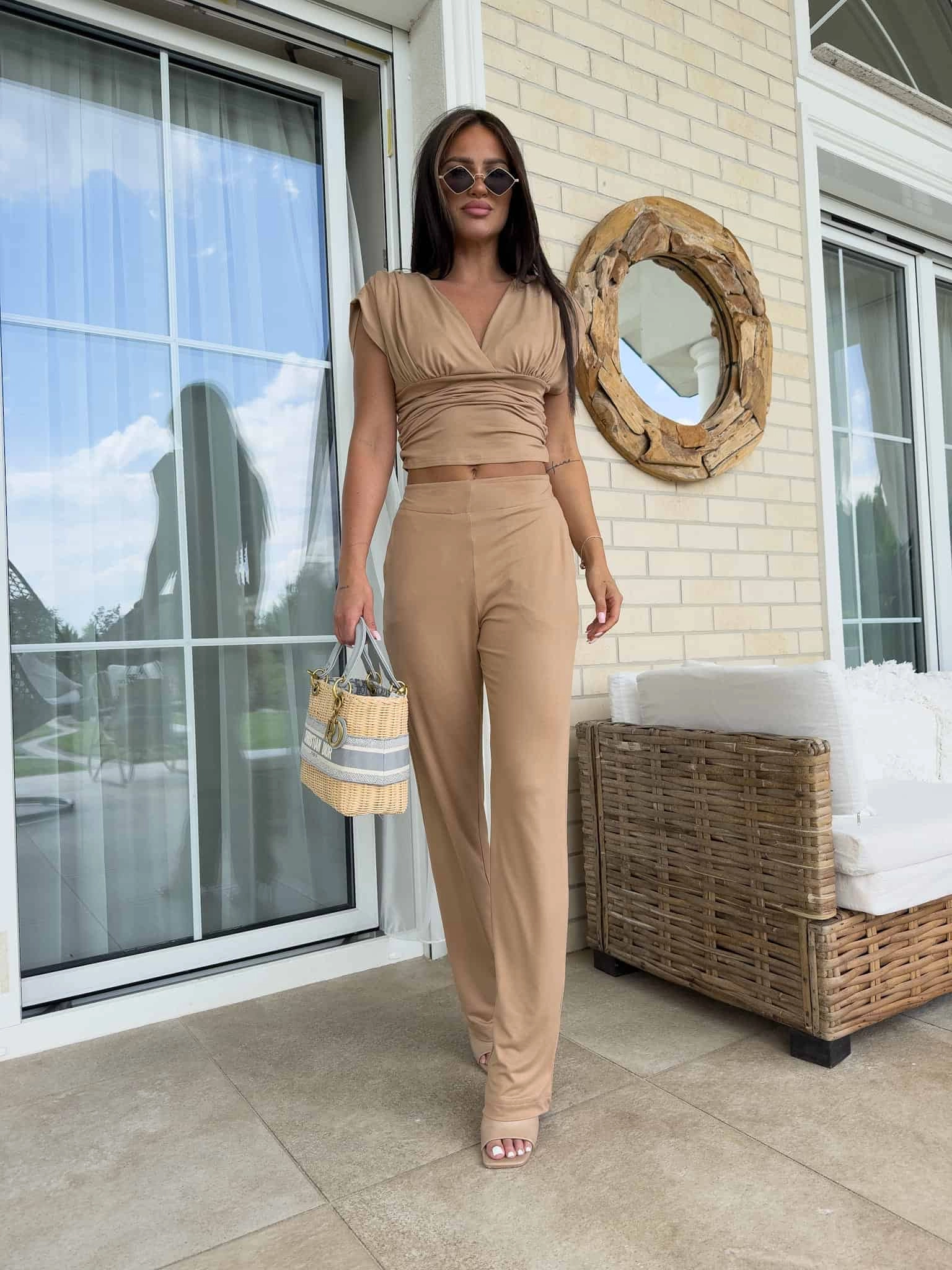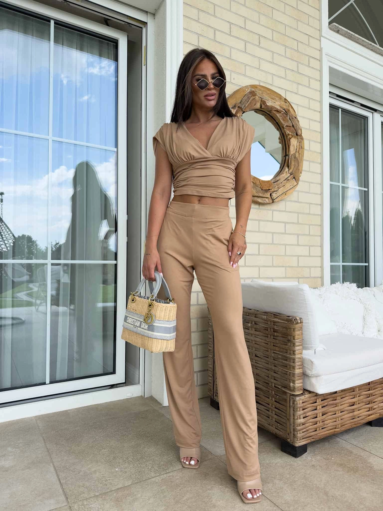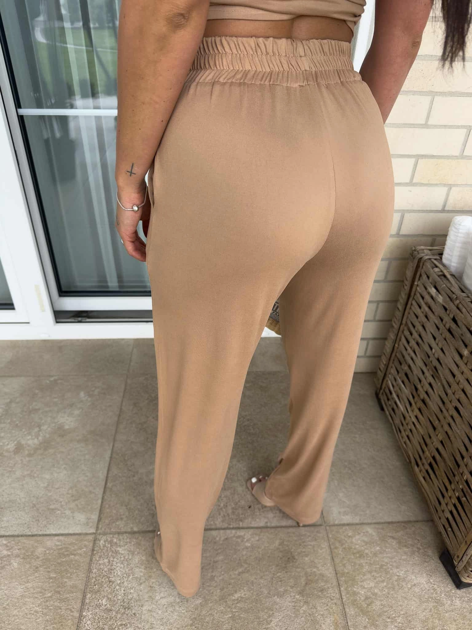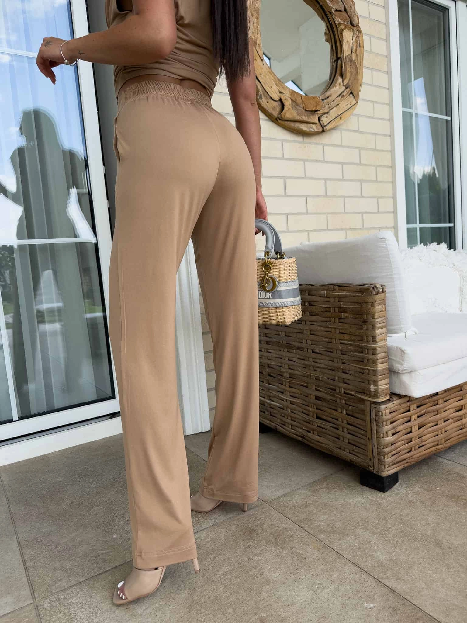SUMMER toffee lekkie spodnie o prostej nogawce