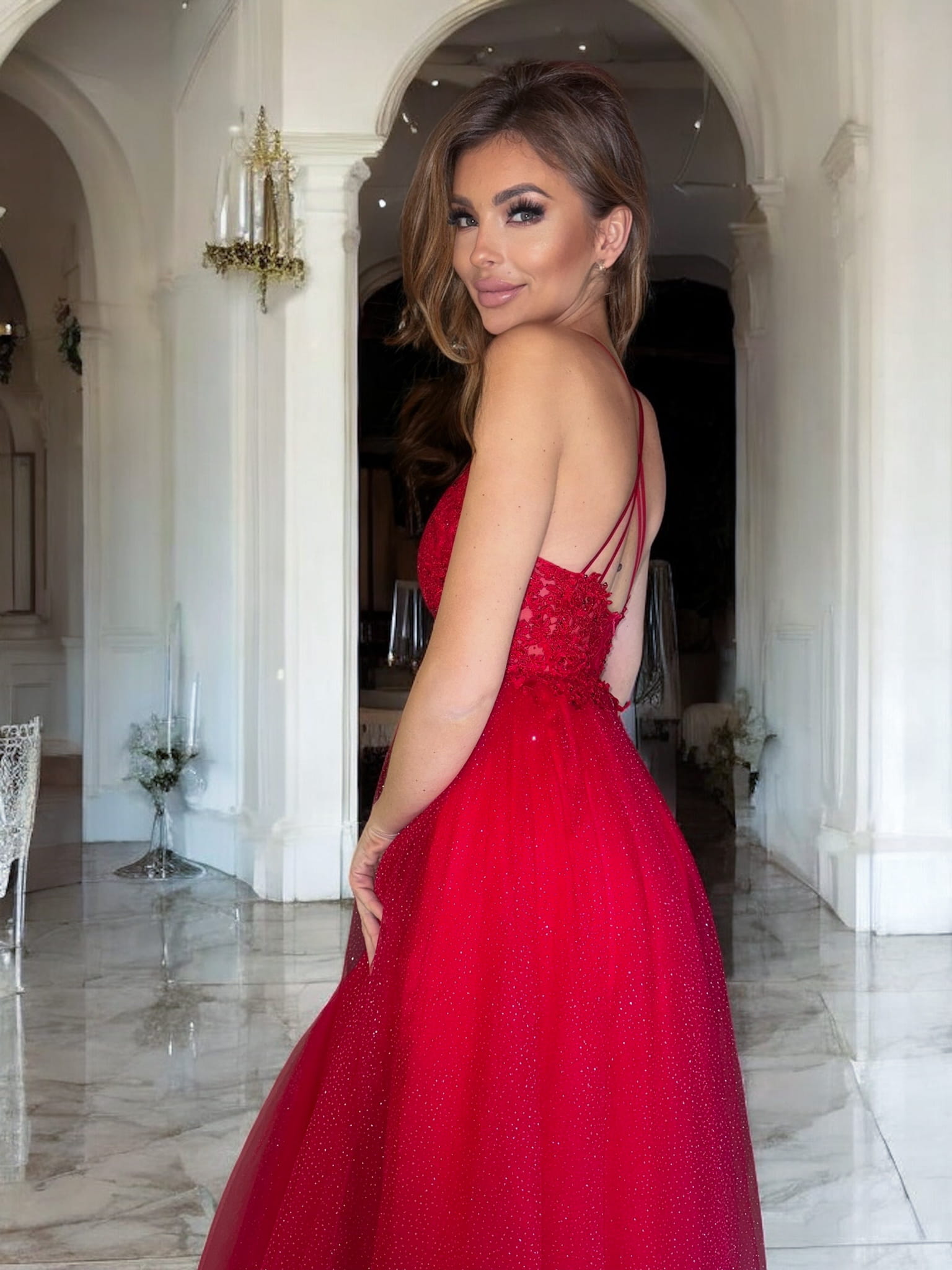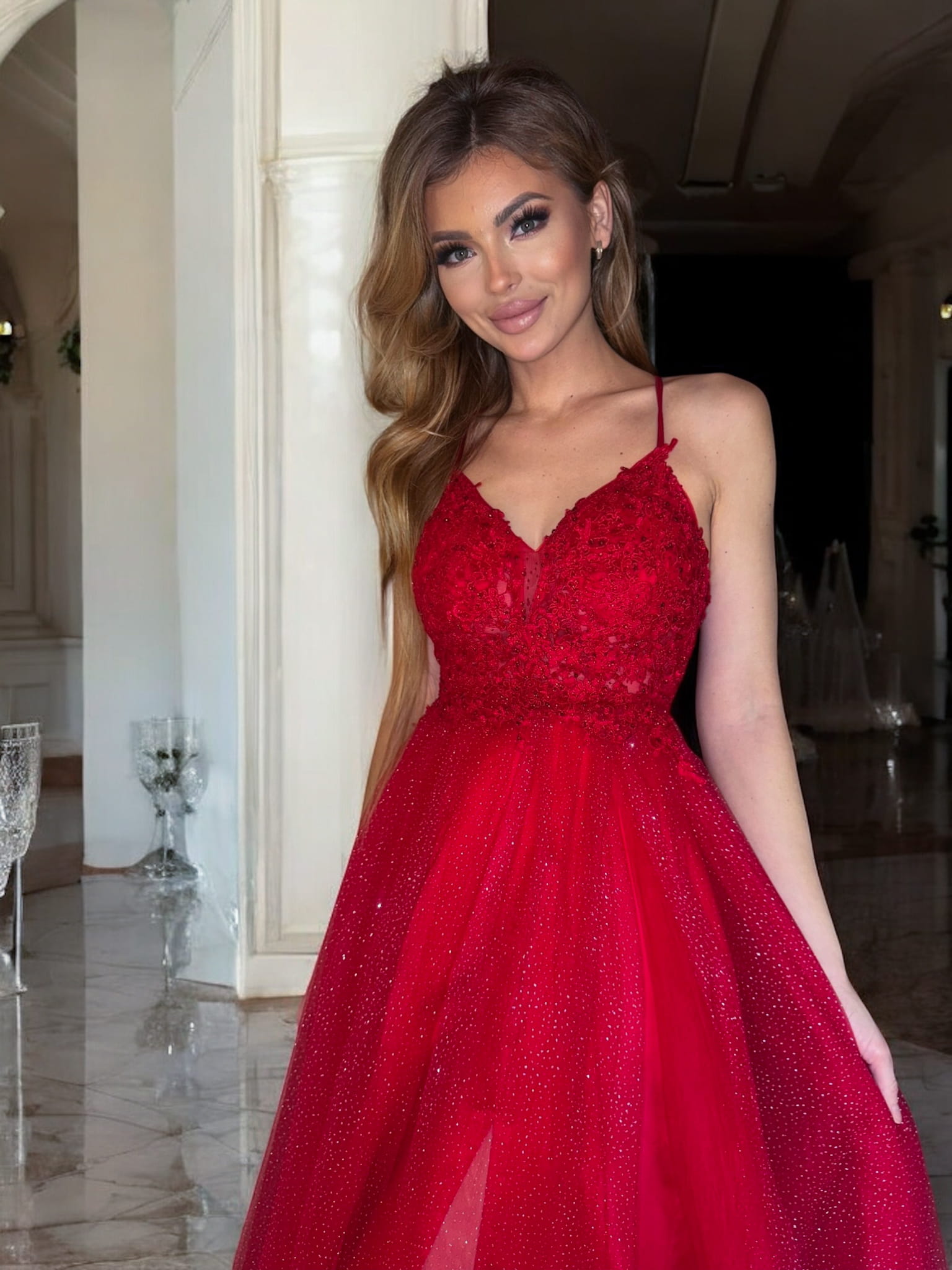 ZEFIR BIS czerwona długa sukienka z brokatem